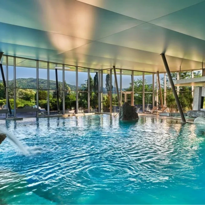 Un espace spa et bien-être d’exception en Alsace. Un havre de paix de 1 000m² au coeur de la nature à Jungholtz dans le Haut Rhin. Vous pourrez profiter d’une piscine intérieure et extérieure chauffée à 33°C entourée de la forêt Vosgienne. Vous pourrez nager dans un cadre dépaysant.